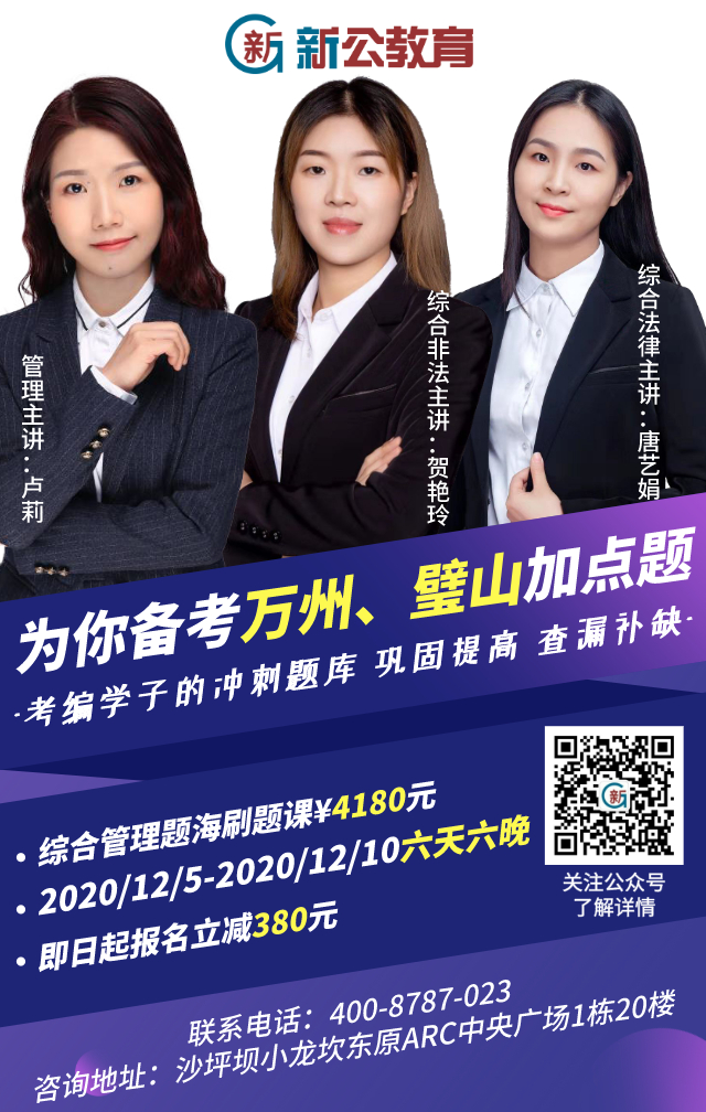 新公教育為你提供更多考試資訊和招聘公告可關注微信公眾號【新公教育(cqxgjy)】查看!